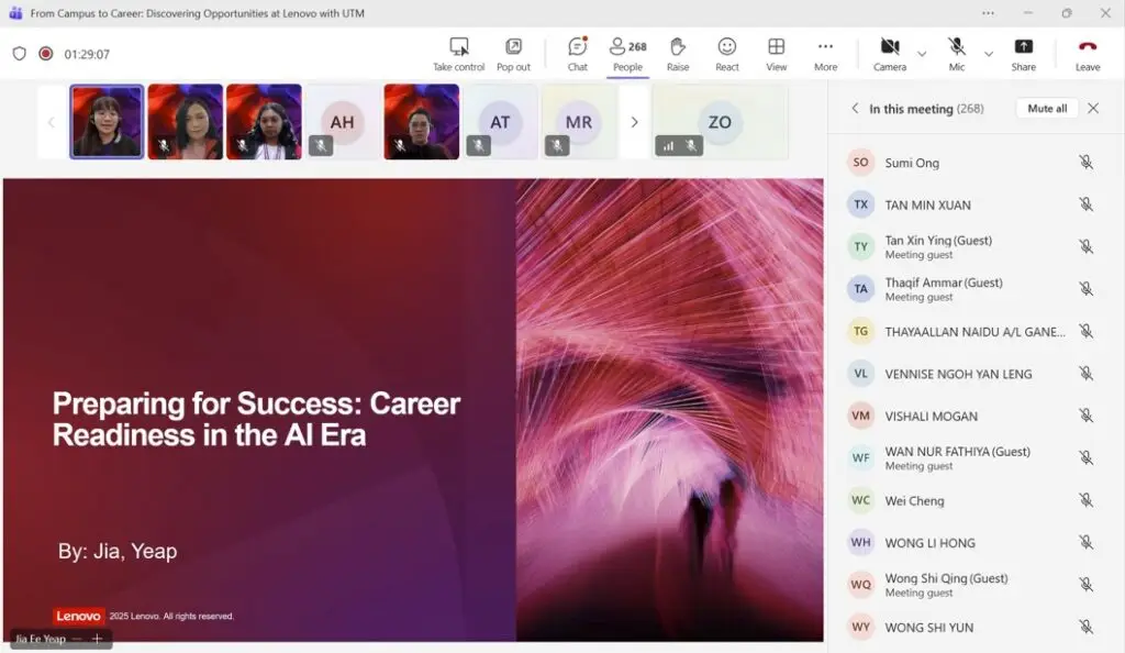 The faculty would like to extend its sincere appreciation to the Lenovo team for their time, support, and meaningful sharing throughout the programme. We also thank all students who participated and contributed to the session’s positive atmosphere. It is hoped that programmes such as this will continue to strengthen industry-academia engagement and support students in becoming more career-ready, confident, and professional graduates.